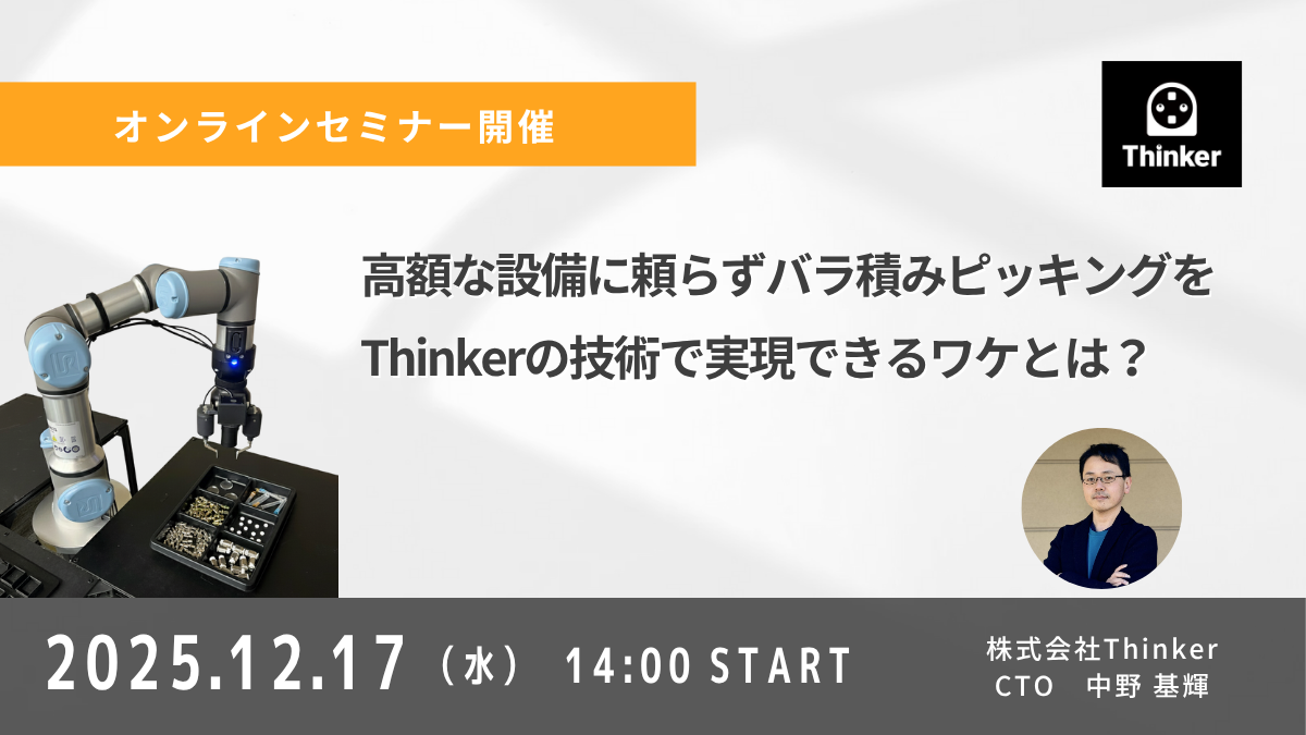 本セミナーでは、Thinkerがバラ積みピッキングを可能にした技術と導入メリットを具体的にご紹介します。